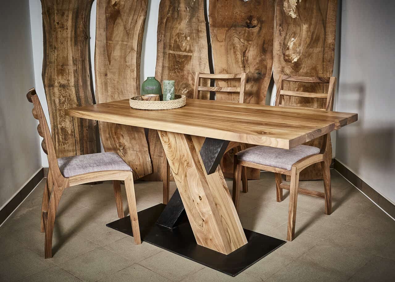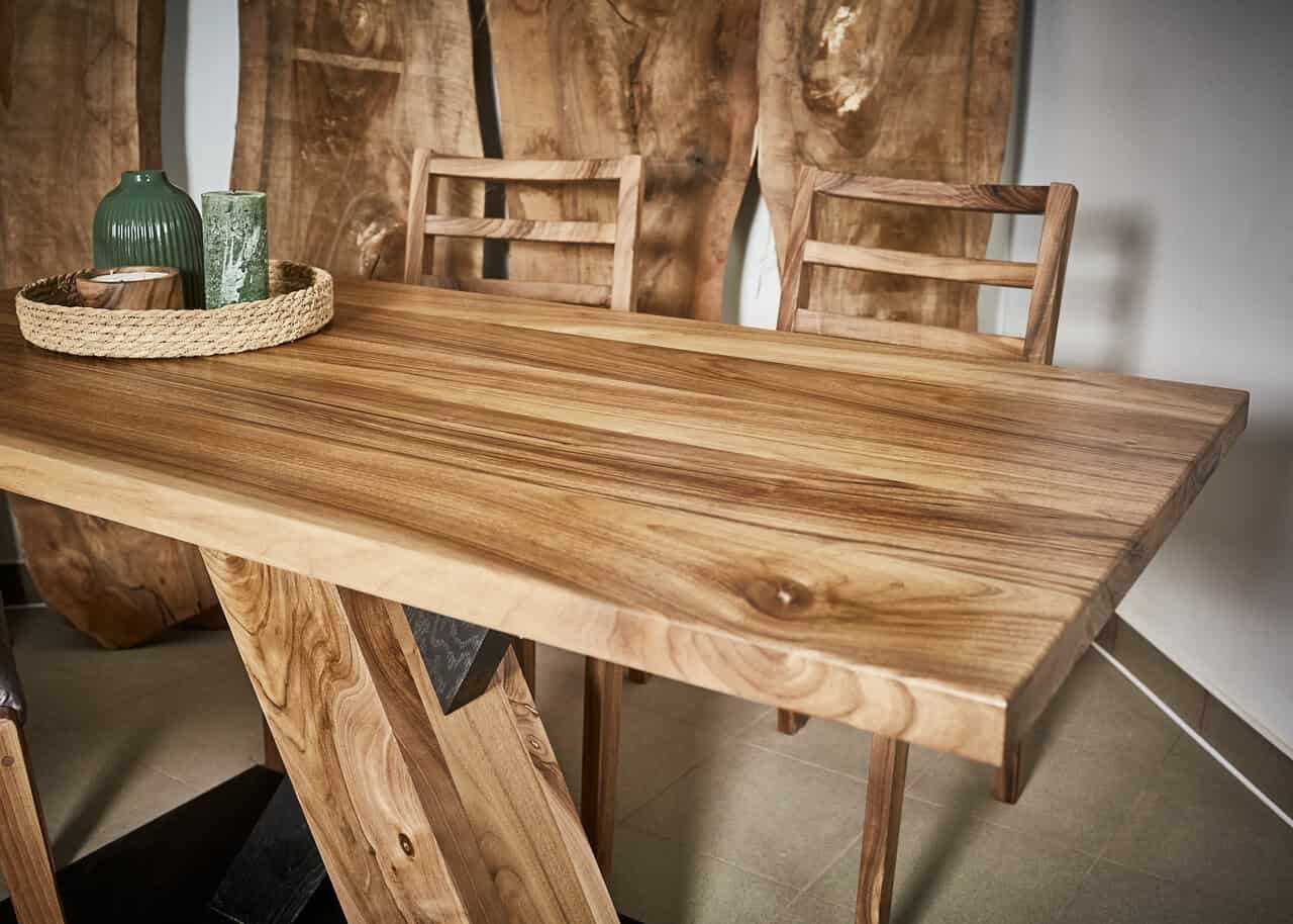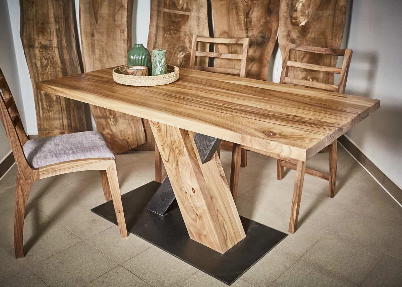 Nasz stół z drewna orzechowego wyróżnia się bogatą teksturą i ciepłym, głębokim kolorem, który dodaje pomieszczeniu przytulności i klasy.