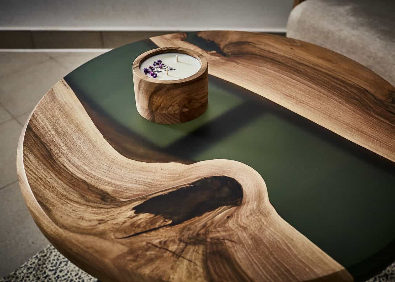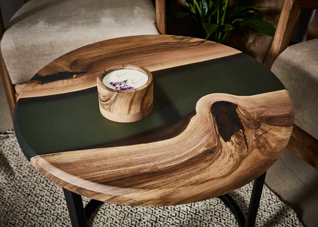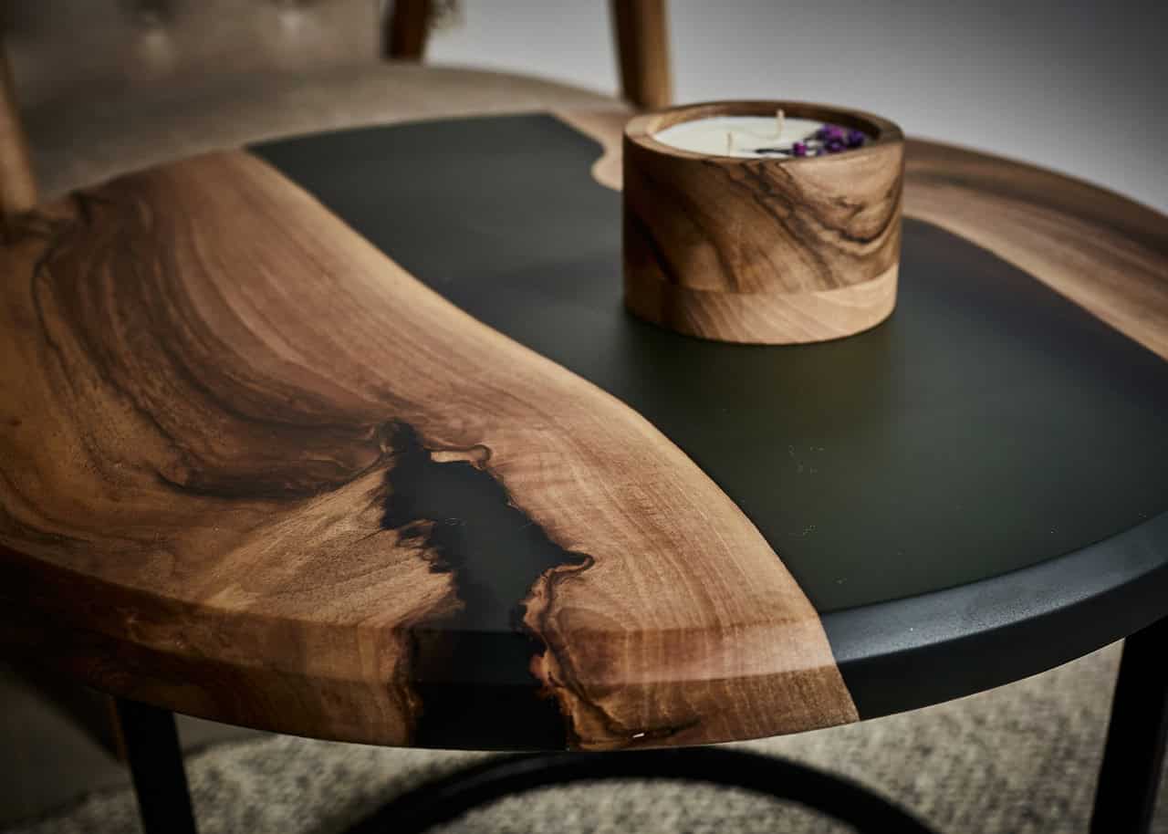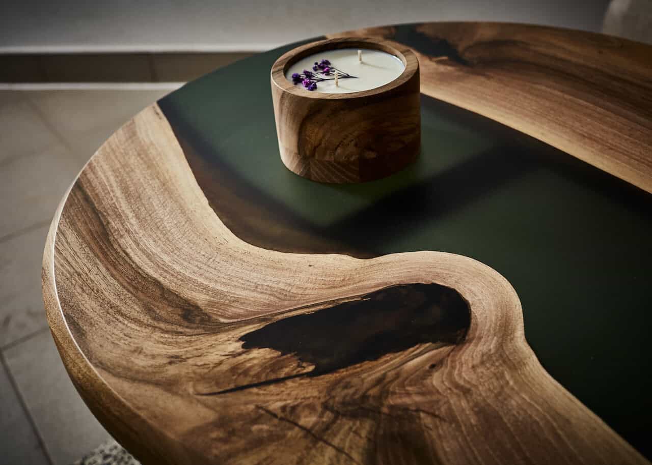 Stolik Forrest – wykonany z najwyższej jakości drewna orzecha z zieloną żywicą epoksydową.