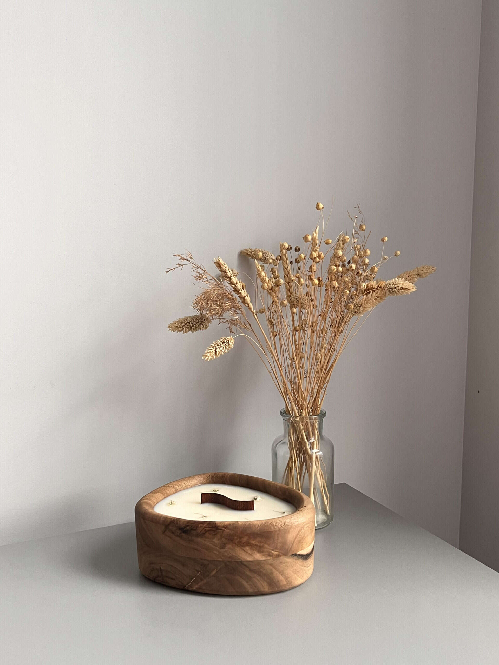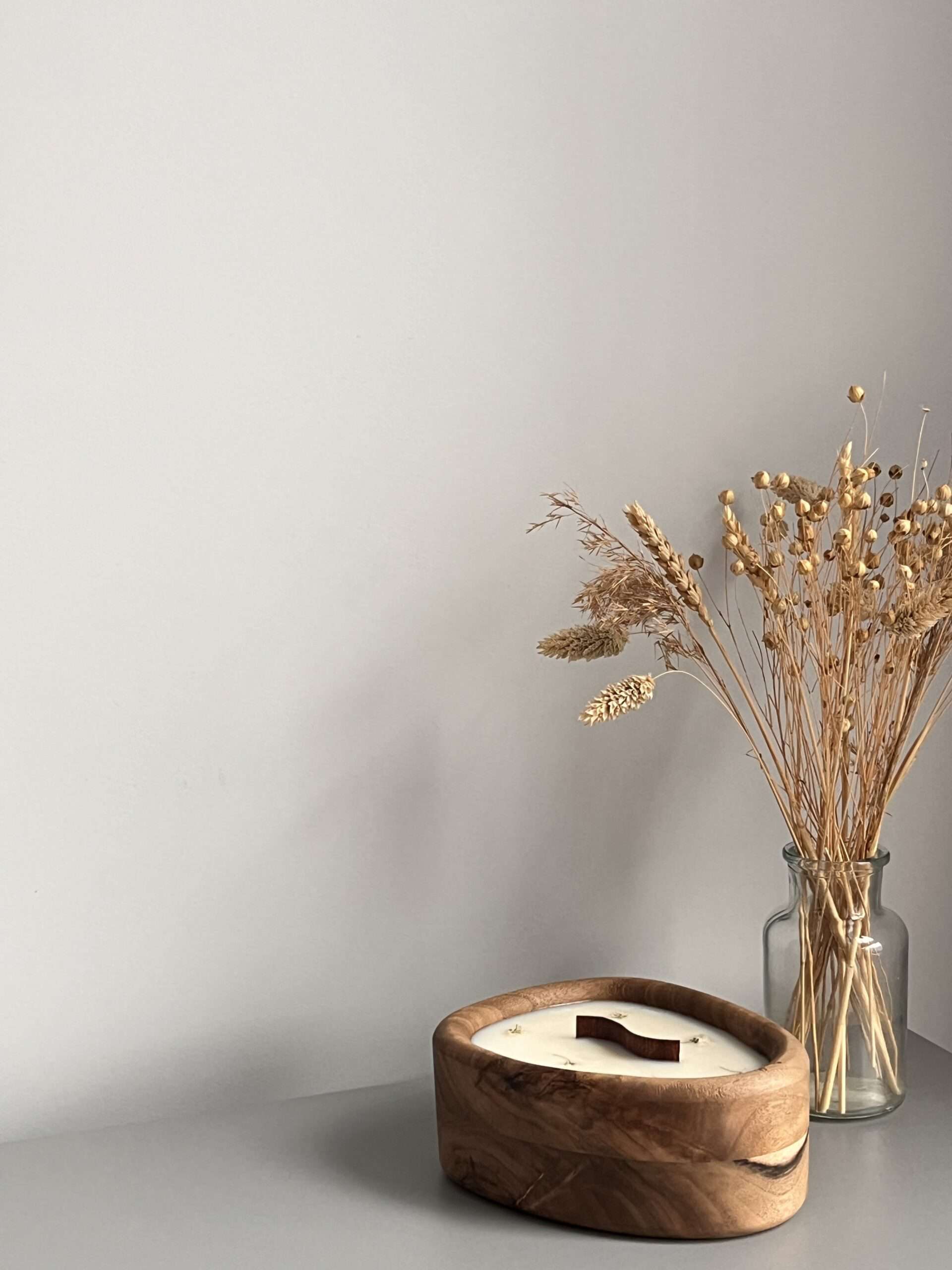 Nasza unikalna świeca wykonaną z naturalnego wosku sojowego i umieszczona w eleganckiej drewnianej formie.